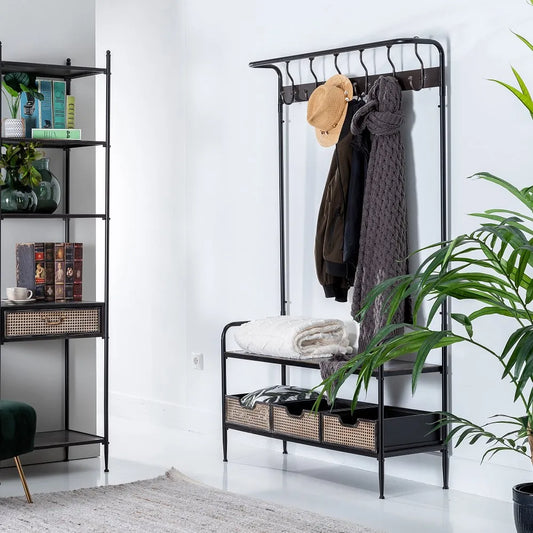 Lucas Industrial Hall Tree with Coat Rack and Storage – Black & Brown
