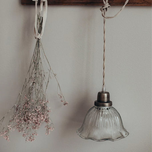Rocio Pendant – Wavy Clear Glass with Antique Brass Fixture