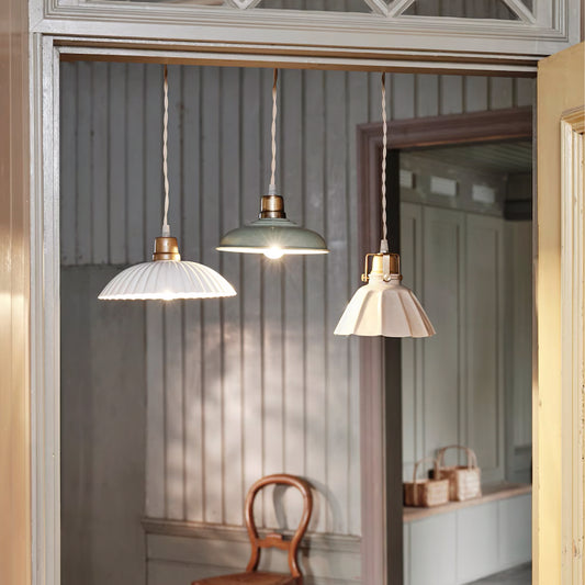 Paloma Pendant Lamp – Beige Iron Pendant with Brass Detailing