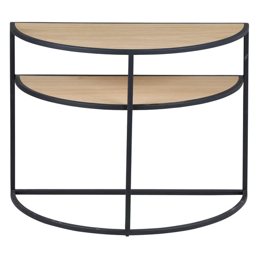 Cataleya Sofa End Table | Natural Oak & Metal Half-Moon Side Table