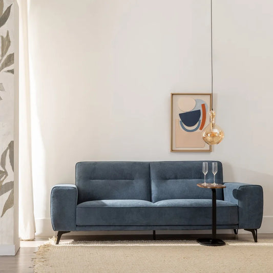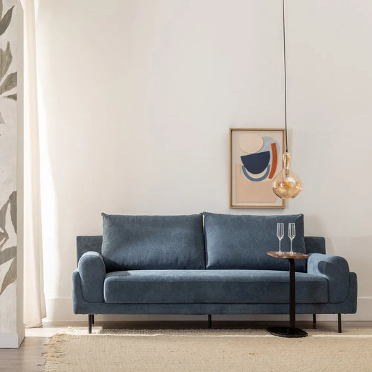 Gorka 3 Seater Sofa Blue Fabric-Metal – Sleek Urban Style, 220cm