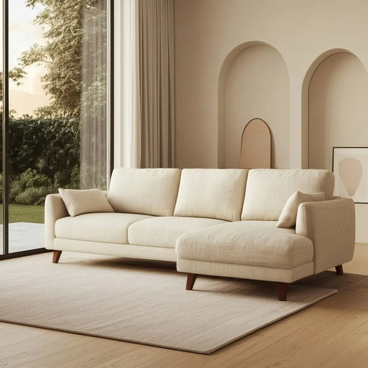 Federico Chaise Longue Sofa Beige Weave-Wood – 240cm Soft Elegance