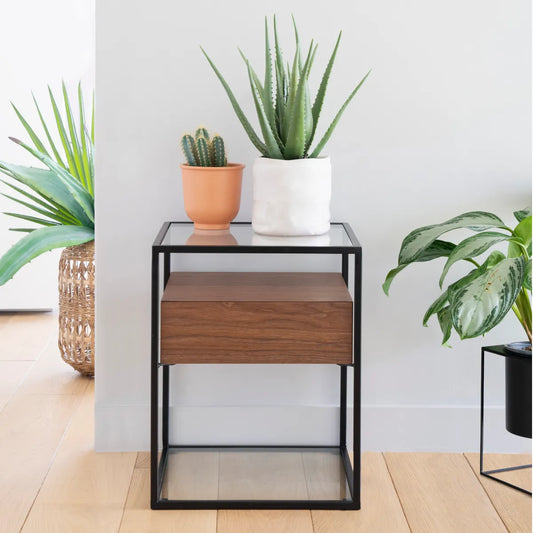 Cayetana End Unit – 1-Drawer Side Table with Glass Top