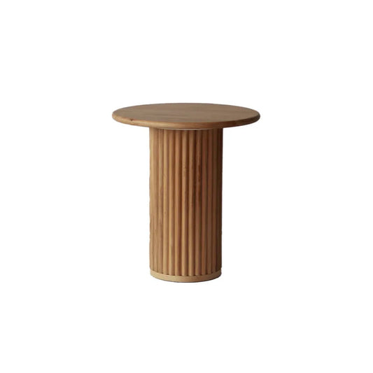 Gala Oak Veneer Sofa End Table – Fluted Pedestal Accent Table