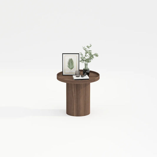 Elia Walnut Veneered Sofa End Table – Round Modern Accent Table