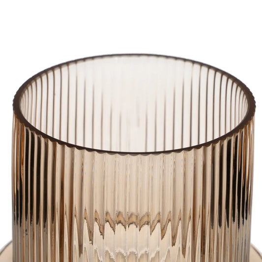 Kayleigh Ridged Brown Glass Vase – Compact & Chic