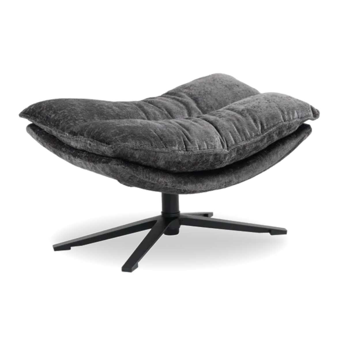 The Jack footstool offers a sculpted cushioned design that complements the relaxed silhouette of the Jack chair. Supported by a black metal swivel base, it’s perfect for putting your feet up or adding an extra touch of comfort to your living space.
